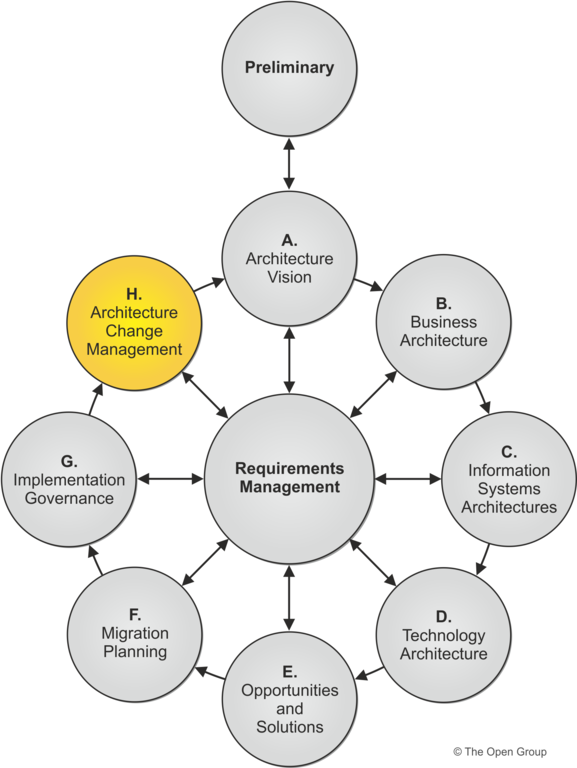 The order of the steps in Phase H as well as the time at which they are formally started and completed should be adapted to the situation at hand in accordance with the established Architecture Governance.