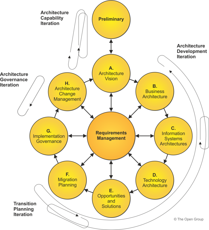 Subsequent iterations of the Architecture Governance cycle focus on periodic reviews of change initiatives to resolve issues and ensure compliance. Results of a Change Request may trigger another phase to be revisited; for example, feeding back a new requirement to the Preliminary Phase to improve the Architecture Capability, or a new requirement for the architecture into the Architecture Development phases. |