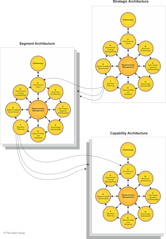 The ADM supports a number of concepts that are characterized as iteration. First, iteration describes the process of both describing a comprehensive Architecture Landscape through multiple ADM cycles based upon individual initiatives bound to the scope of the Request for Architecture Work. Second, iteration describes the integrated process of developing an architecture where the activities described in different ADM phases interact to produce an integrated architecture. In order to concisely describe the activity and outputs, this latter iteration is described in sequential terms. Third, iteration describes the process of managing change to the organization's Architecture Capability.